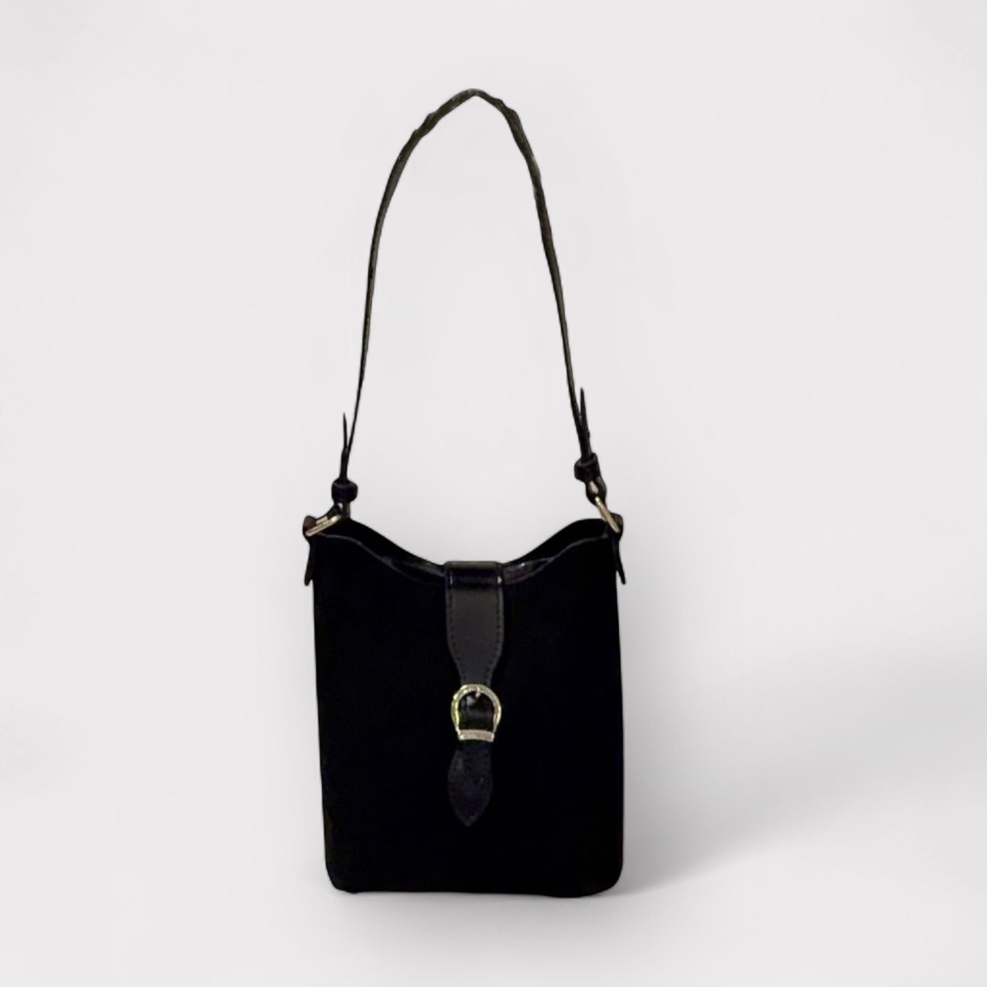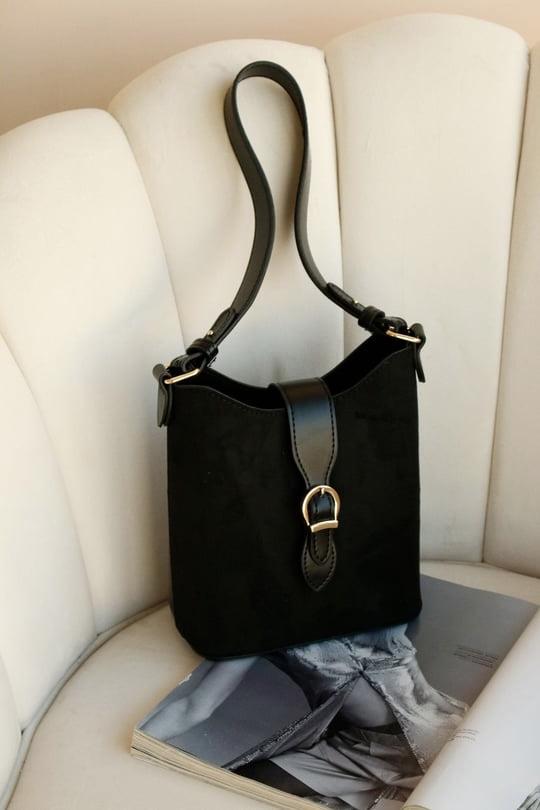 Nova Siyah Süet/Deri Yavrulu Omuz Çantası