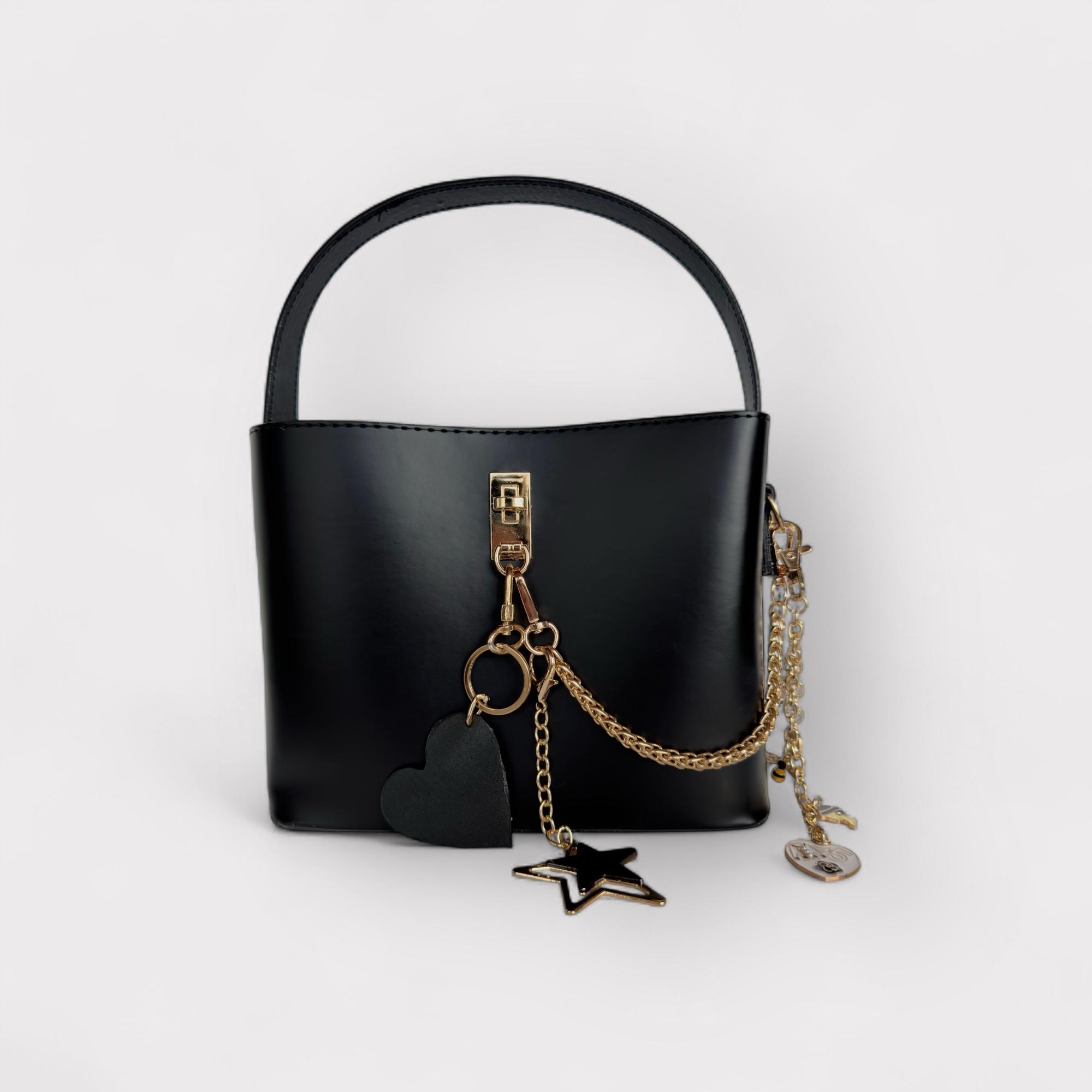 Vesna Siyah Zincirli Charmlı El ve Omuz Çantası