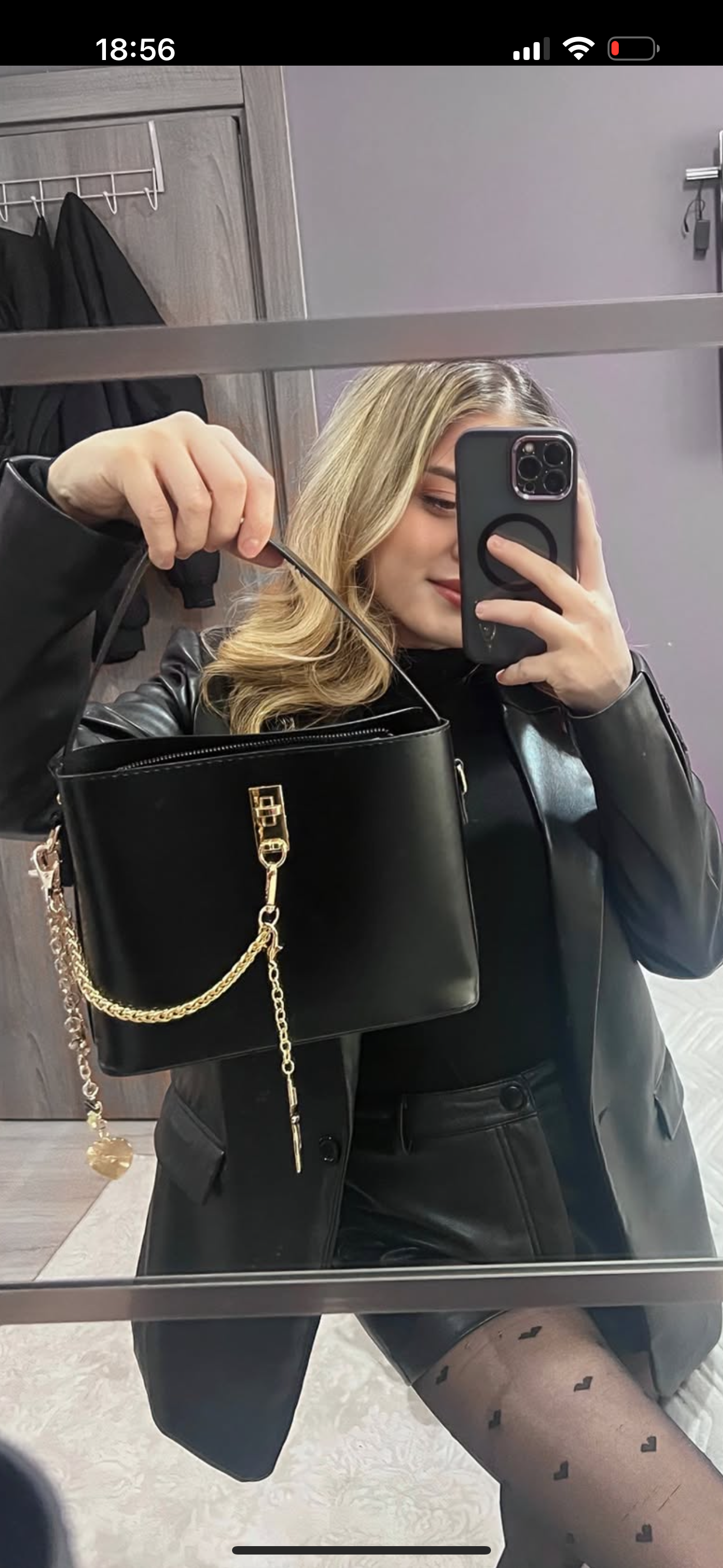 Vesna çantası, yüksek kaliteli deriden üretilmiştir. Dış yüzeydeki siyah ton, her türlü kıyafetle kolayca kombin olarak kullanabilmenizi sağlar. Zincir detayları ise çantanın modern ve şık görünümünü tamamlar. Zarif bir dokunuşla çantanın üst kısmına eklenen charm detayı, kişisel bir stil yaratmanıza olanak tanır.